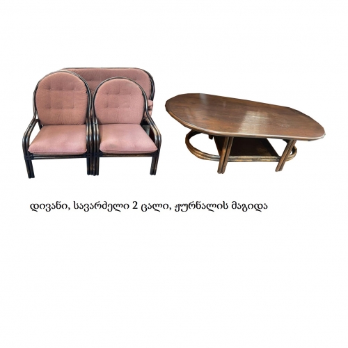 დივანი, სავარძელი 2 ცალი, ჟურნალის მაგიდა